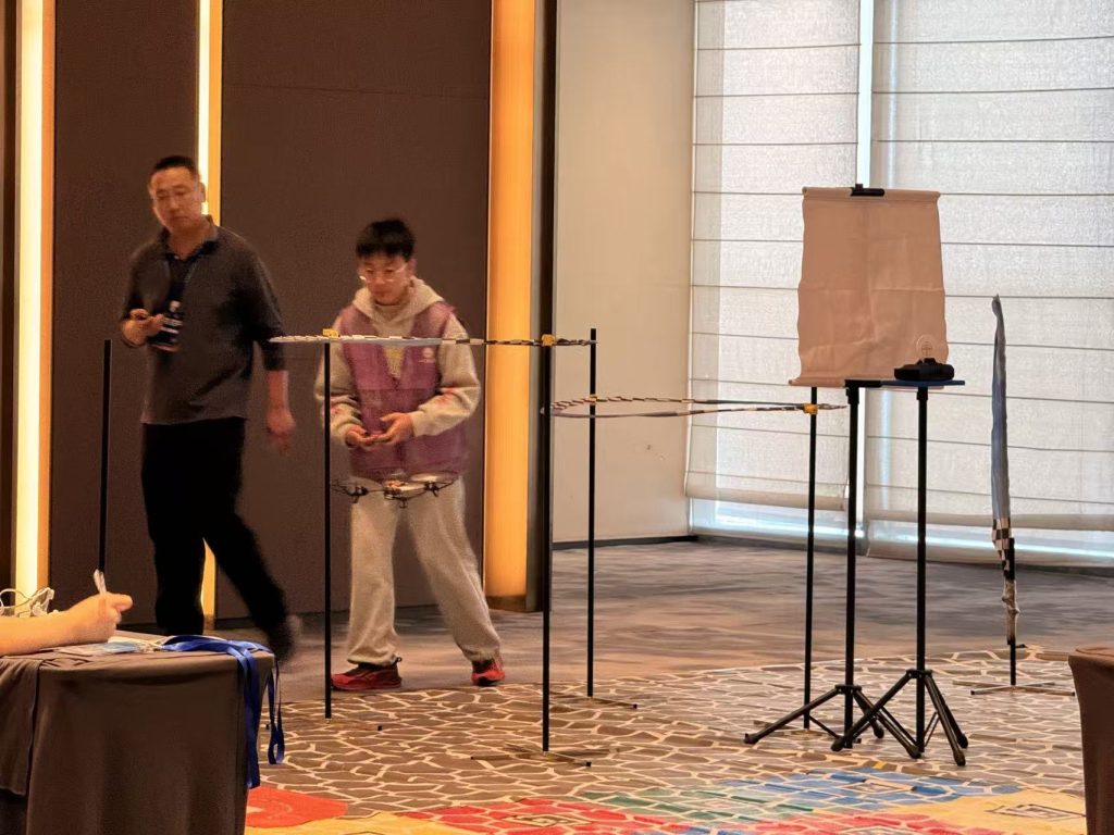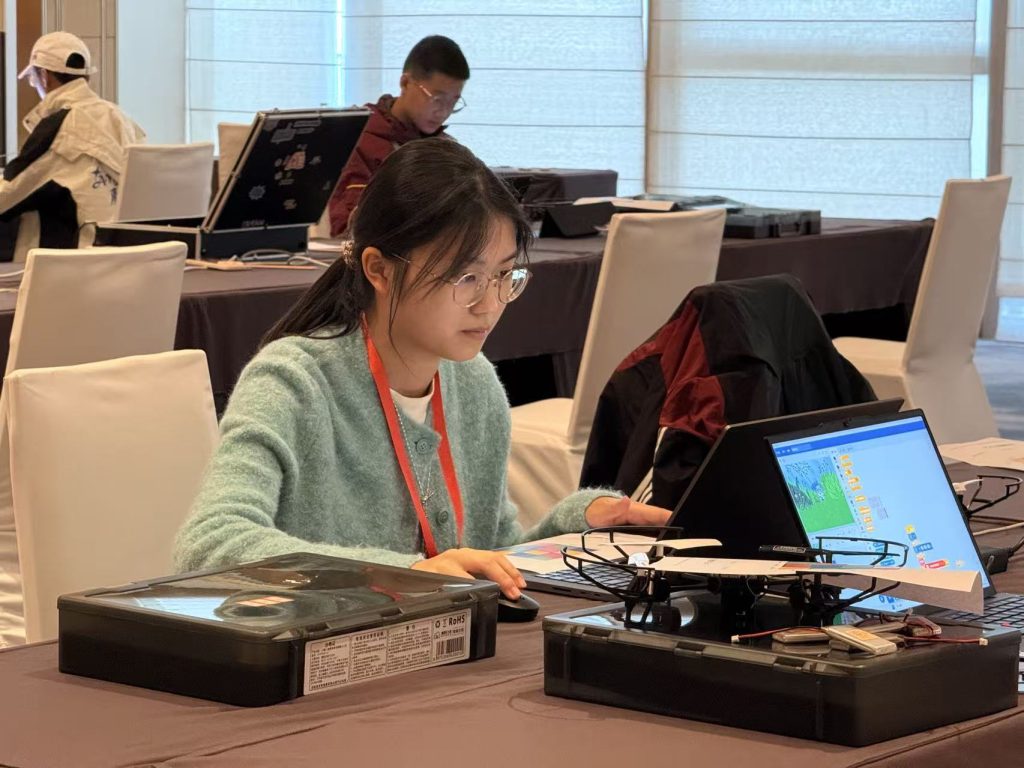 作为编程类核心项目,D1强调“编程自主飞行+现场竞技”的综合能力:选手需在规定时间内完成组装、编程与调试,并在正式比赛中先通过程序实现自主飞行任务,再进行遥控操纵完成射击、穿越障碍等科目,最终按总得分与用时评定成绩。该赛项紧密衔接人工智能与工程实践场景,对青少年计算思维、工程素养与安全规范意识提出更高要求。